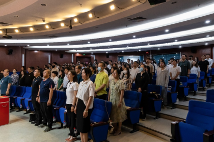 李国政宣布大会开始,全体起立,奏唱《中华人民共和国国歌》。