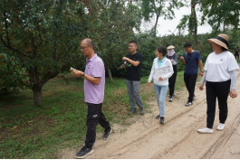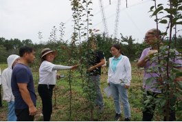 海棠种质资源库副总经理李素丽、生产科科长席燕敏带领团队成员对种质资源库收集保存的种质资源进行了参观考察,详细介绍了海棠种质资源库收集保存的观赏海棠品种特点、优势以及目前主要种质创新工作。