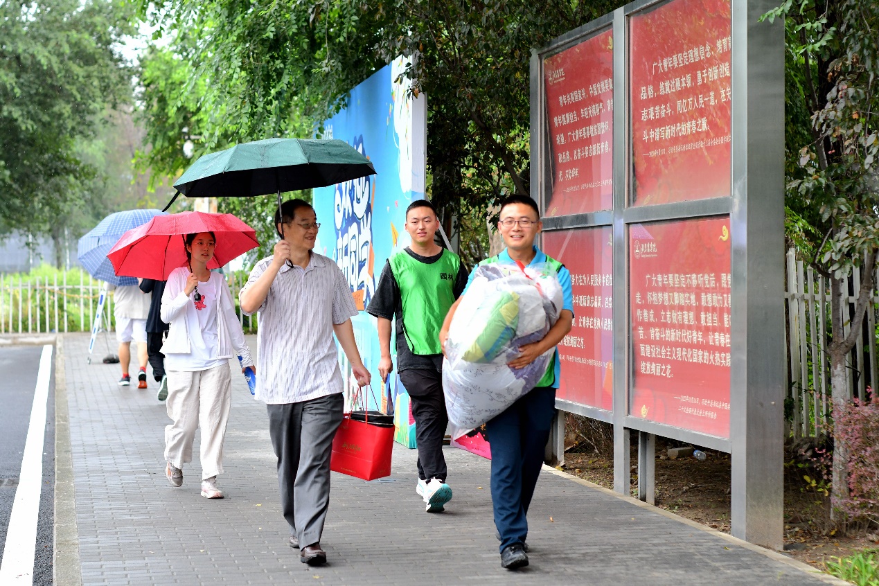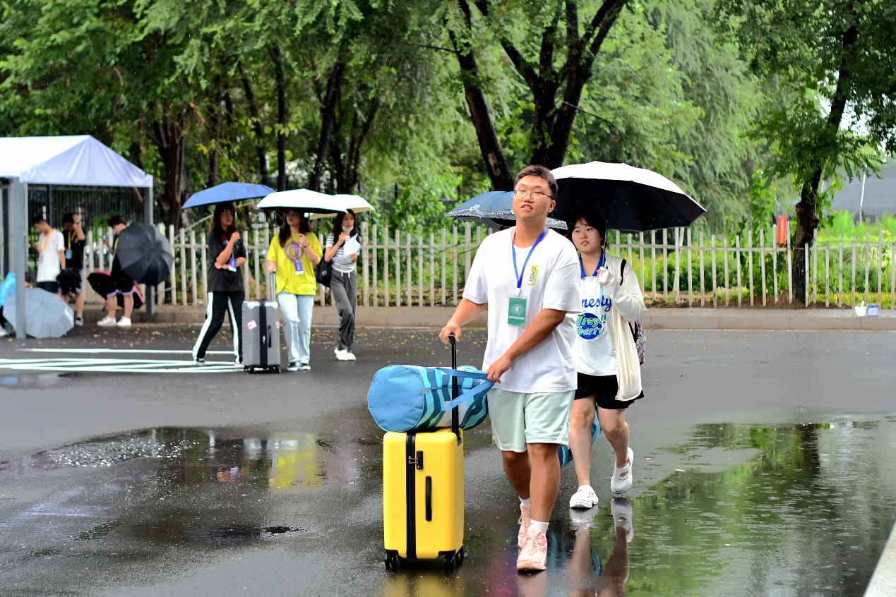 迎接新生工作正式拉开帷幕。受阴雨天气影响,对迎新工作开头造成了些许困扰,但是由于学院准备充分、组织得力,各项工作井然有序。学院全体领导、辅导员、新生班主任、班主任助理、学生会工作人员,以及志愿者队伍,积极投入新学期的迎新工作,努力保证顺利和安全。