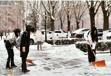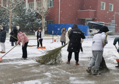 学院师生用自己的实际行动,打了一场漂亮的除雪仗,展现出了一道美丽的风景线。