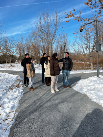 副院长孙薇薇带领林学系教师王文波、风景园林系教师鲍梦涵一行赴北京怀资园林绿化工程有限公司开展调研交流,怀资园林总经理李鹏、副总经理王梓明、总工刘桂东、办公室主任赵娜、设计师王丹共同参加了本次交流活动。双方对合作建设学生实习实践基地、密切开展技术交流以及共同开展科普宣传活动等事宜展开讨论交流,并一同调研参观了相关公园、森林驿站、苗圃及蜂产业基地。
