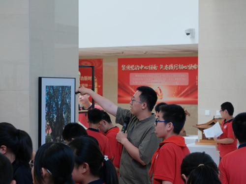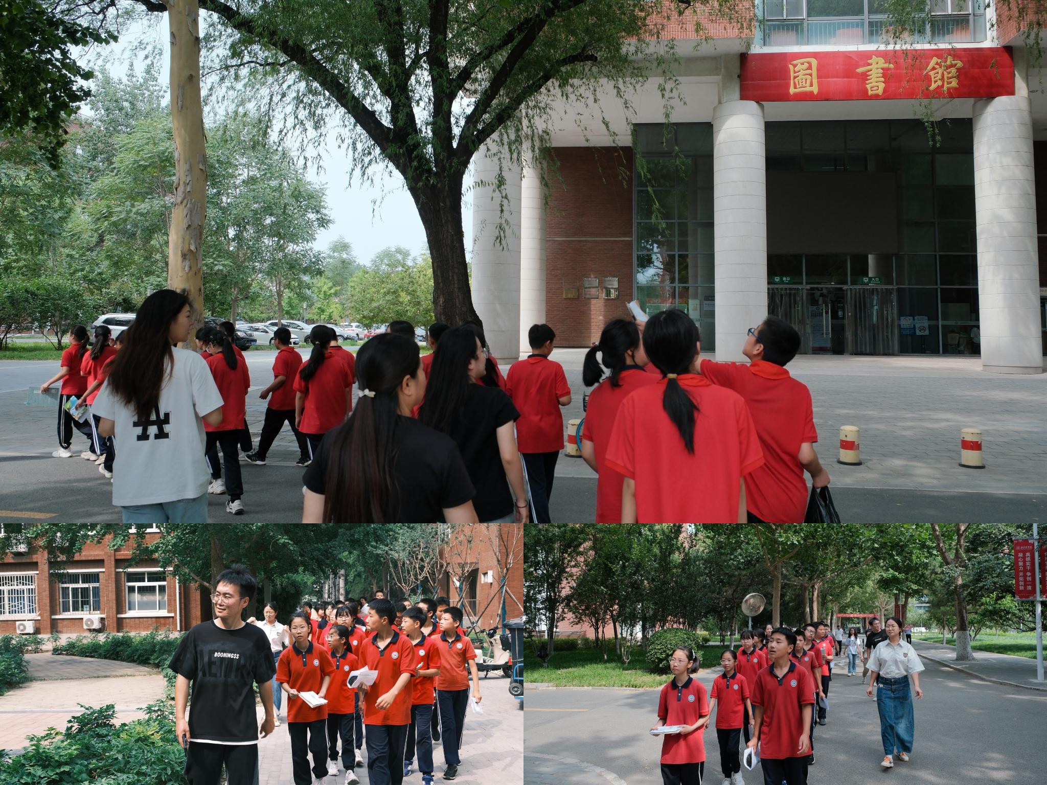 研究生作为“导游”,在带领同学们游览校园的同时,进行校园中园林植物的讲解与识别,介绍植物特性属性,分享学校花境设计。同学们对校园景观设计和标志建筑产生浓厚兴趣。