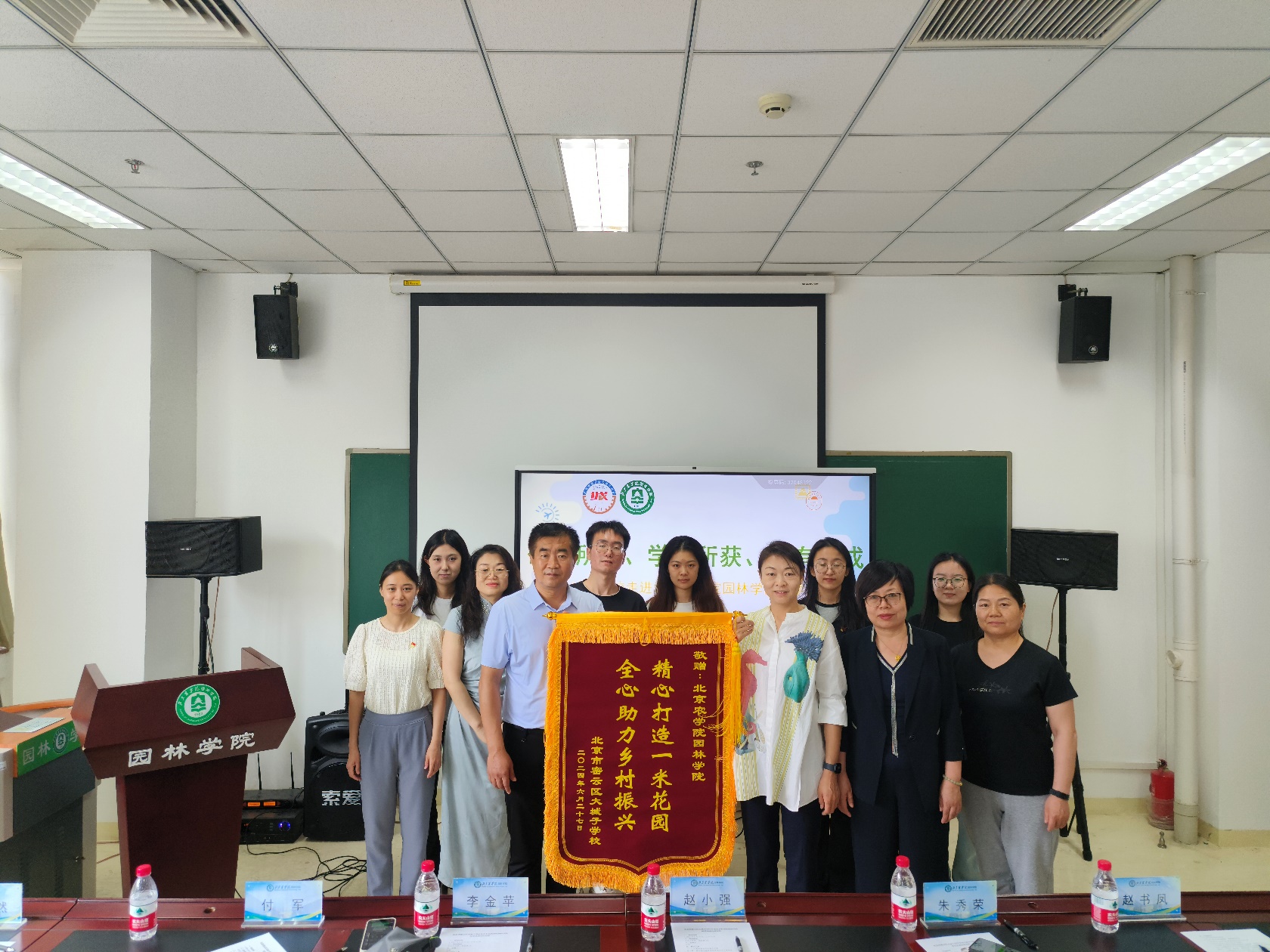 对于乡村学生美育教育培养的支持,为学院送上“北农园林情谊深,爱心传递暖人心”的锦旗,并就双方未来长期深入合作,促进学生发展达成共识。