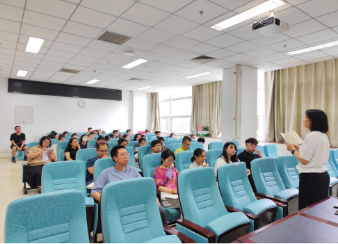 在一楼会议室召开全体教职工大会,部署暑期工作,会议由党委书记李金苹主持,全体教职工参会。