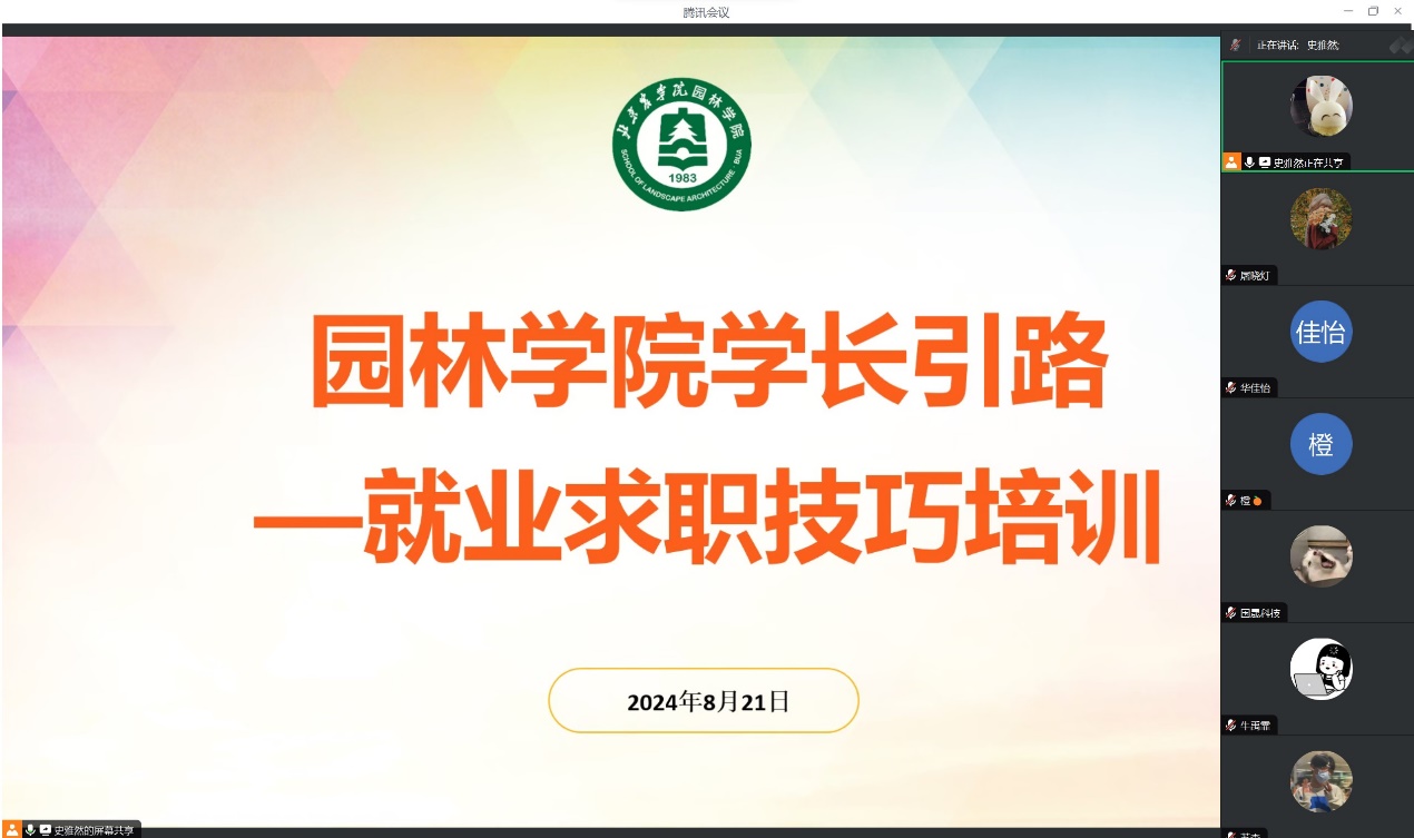 培训会邀请校友讲座,开展有温度的就业指导帮扶,为在园林学子中形成浓厚的就业氛围,端正的就业观念,良好的就业之路打下了基础。