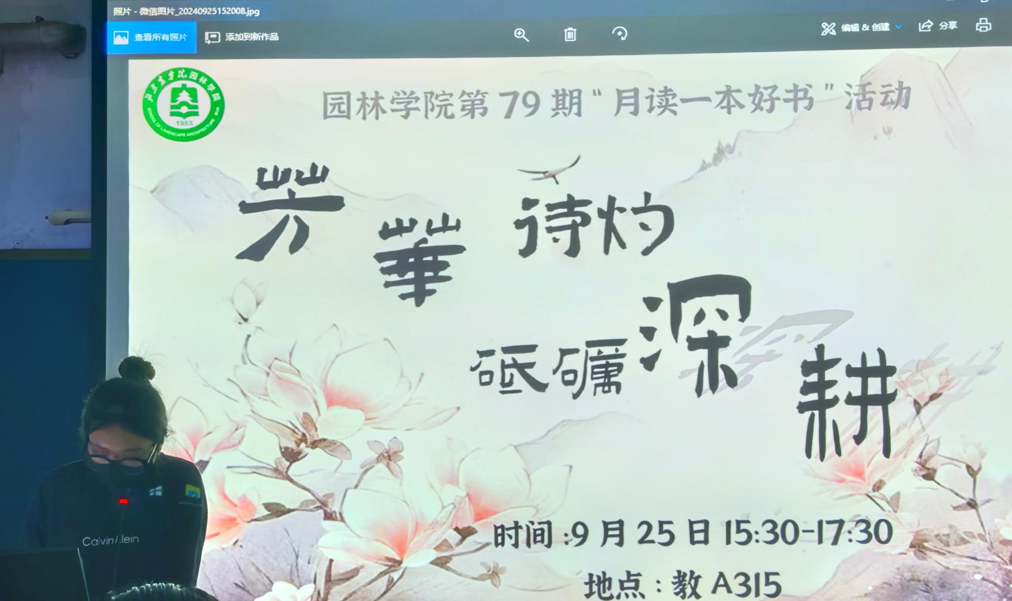 第79期“月读一本好书”活动。教育引导新生在书籍的海洋中汲取智慧,开启研究生学习生活的精彩篇章,为祖国的繁荣发展贡献自己的力量。