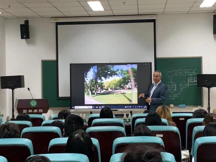 组织学术交流, Tulbure Adrian-Alexandru教授和Varvara Simona-Camelia副教讲授,陈改英老师主持了讲座。有来自园林、生资、植科、动医等学院的53名研究生和本科生参加交流互动。罗马尼亚同行表达了这几天在北京的深切感受和对北京的喜爱,以及对我校的高度赞赏。此次访问更加增进了两校之间的友谊,夯实了双方未来深度合作的基础。共同期待未来能够进一步加强多方面多层次的交流与合作,共同推动两校在国际合作与交流上全方位高质量的发展。