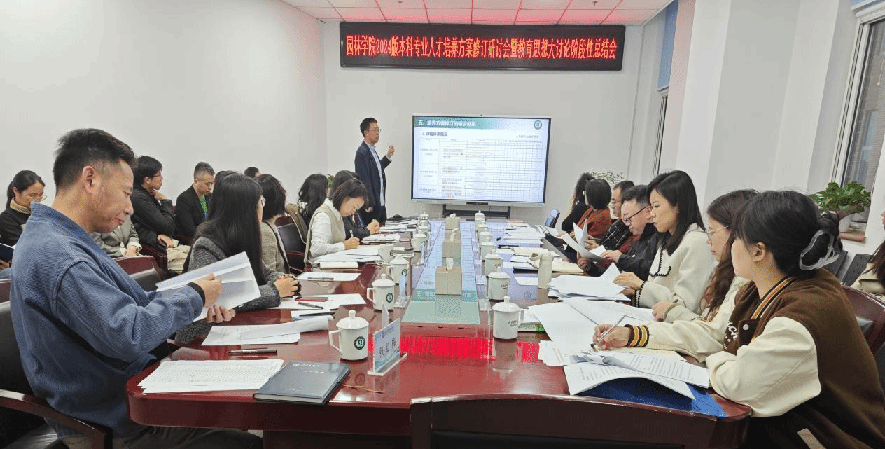 会上,孙薇薇详细介绍了修订工作的背景、指导思想、基本原则及主要变化,强调本次修订紧密围绕时代发展趋势、行业未来需求及学生发展实际,培养具备扎实理论基础与实践能力的高素质人才,力求打造具有鲜明特色的本科教育教学体系。各系主任分别就其专业的修订情况进行了详细介绍,从课程体系优化,实践教学创新,国际视野拓展等方面阐述了修订的具体举措。特别是风景园林系主任朱强提到应明晰自身的办学特色,培养实践型综合应用人才,培养方案应充分考虑目前行业、学情和师资方面面临的问题和困境,重视培养学生的兴趣,转变培养目标,加强混合式教学等。与会人员围绕如何进一步提升教育教学质量、优化课程体系、加强过程性评价、满足专业认证标准要求等展开了深入交流,建言献策,为完善2024版本科专业人才培养方案提出了很多建设性的意见和建议。