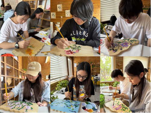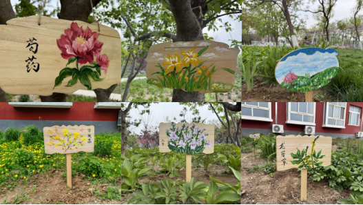 活动中,同学们充分发挥环境设计专业特长,以园区植物为创作素材,运用素描、水彩等艺术手法,在木质标牌上绘制出30余幅展现生物多样性的创意作品。黄鸢尾、芍药等植物在同学们的画笔下焕发新生,木纹肌理与丙烯颜料巧妙融合,为春日校园增添艺术气息。