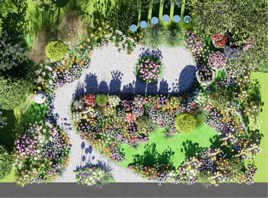 以“生活剧场”为核心,将废弃或日常物件转化为花园的叙事主角,打造一个充满烟火气的沉浸式自然空间。花园不仅是植物的容器,更是社区记忆与创造力的载体,用诙谐的视觉语言拉近人与自然的距离,唤醒居民对生活美学的感知。通过将琐碎日常升华为艺术化场景,花园成为社区共创的“生活博物馆”,居民在照料植物的过程中重拾对旧物的情感联结,重建人与土地、人与人的温暖关系。