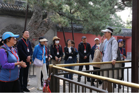 受到邀请,由风景园林系副主任、三山五园工作室学术带头人朱强老师和实验师王聪老师担任主讲专家,带领40余名学员深度探访了颐和园的宫廷区建筑群、昆明湖景区以及万寿山景区中的十余处代表景点。在游览过程中,朱强老师结合“三山五园”的背景知识,从颐和园的空间布局、文化意境、植物配植、研究保护等角度解读园林艺术,以通俗的语言和专业的知识为老同志阐释园林艺术的精妙之处,让大家在游园过程中,全面了解古典园林的历史渊源、美学价值与哲学思想。王聪老师讲解了颐和园内古树名木及花卉的特征和习性,让大家了解了皇家园林常见植物的种类及观赏方式。