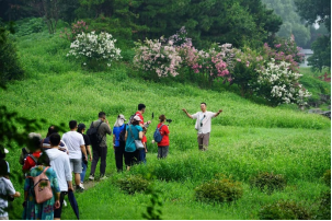 学院“三山五园”团队打造出了线上线下同步的“沉浸式”穿越体验。线下15余人团队实地徒步近4公里,探访约20处景点;线上通过微信视频号、小红书“三山五园研究”账号进行双平台直播。让园林美学基因真正融入现代生活,成为唤醒文化自信的“鲜活密码”。