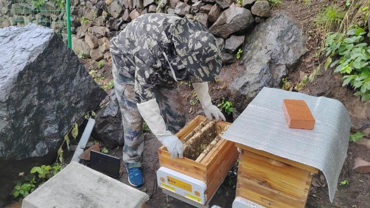 第三站观智能蜂场,探蜂群结构。带领青少年来到黄塔村智能蜂场参观,了解蜜蜂的生活习性、蜂巢的结构以及和蜂场的运行模式,引发青少年对自然界昆虫种间关系的进一步思考。