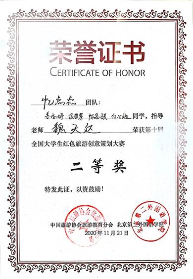 2019级白心远同学和北京第二外国语学院同学联合组建的“忆点点”团队在本次比赛中荣获了二等奖的优异成绩,实现了我校学生参与此项赛事成绩零的突破。