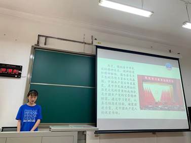 第二位进行分享的是风景园林专硕研究生马爽同学,她也为我们带来了《文献中的百年党史》。通过马爽同学的讲述大家都有了深入的体会,从红船中走来,走过百年峥嵘岁月,理想从未因时间流逝而变老;回顾党的百年风雨历程,中国共产党始终不忘初心,砥砺前行。