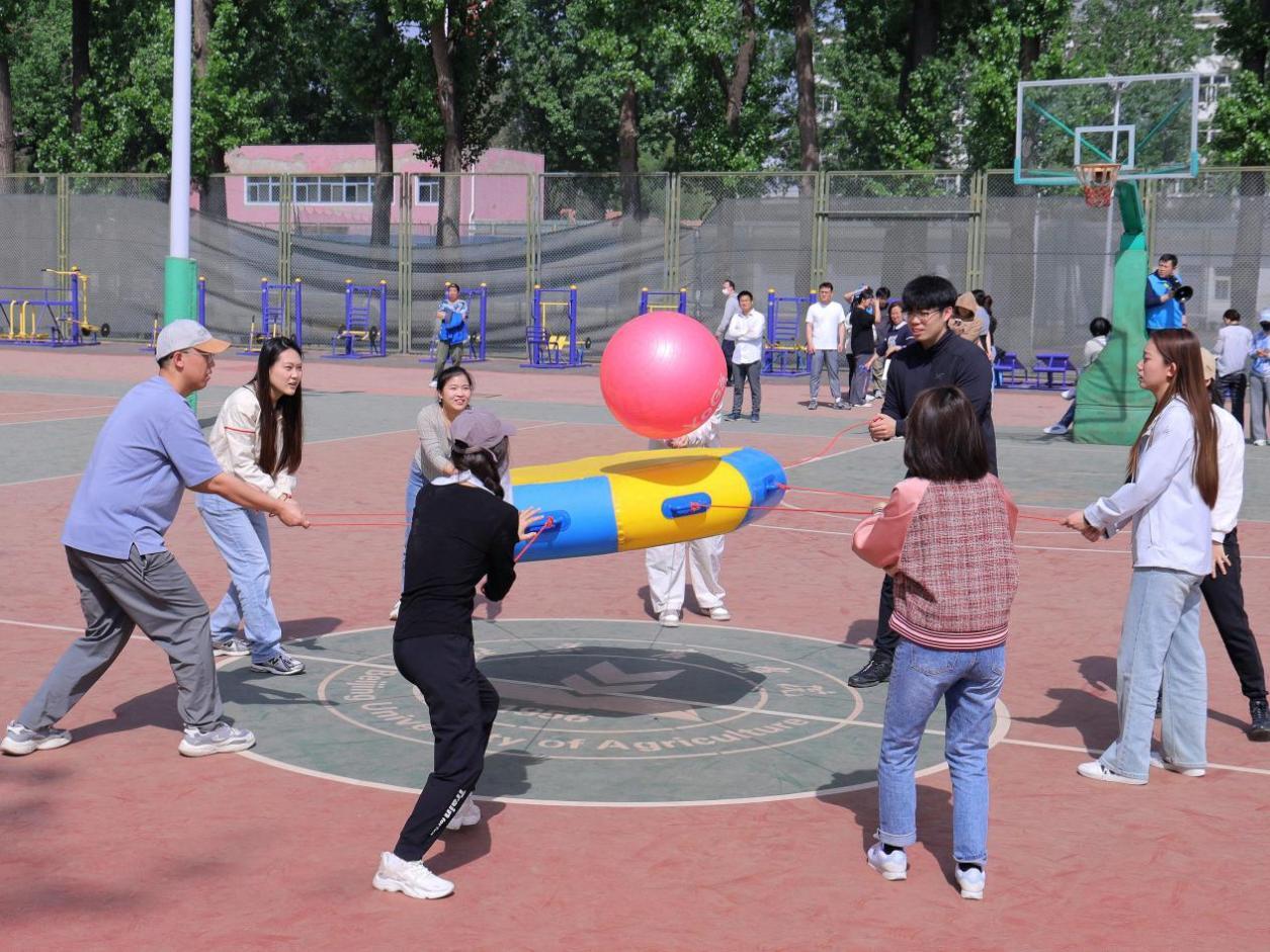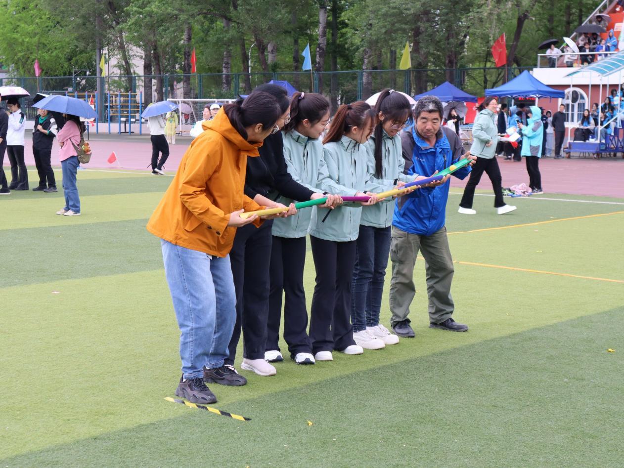 趣味运动会上设立了许多欢乐有趣的项目,师生们团结一心,默契无间,脸上洋溢着美好的笑容。